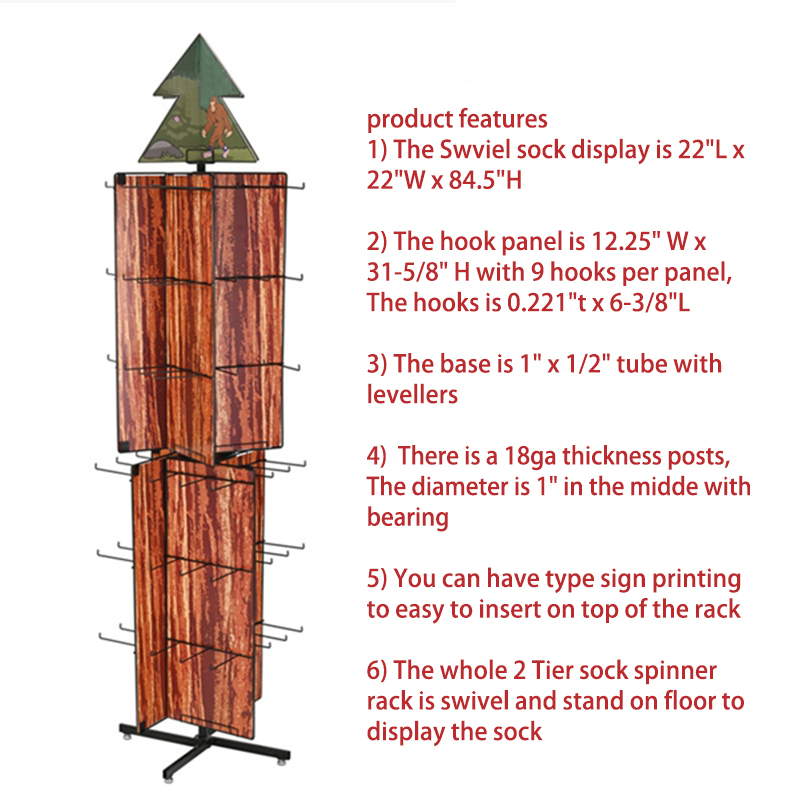 Two-tier swivel design na nagbibigay-daan sa mga customer na biswal na ma-access ang mga medyas sa lahat ng direksyon