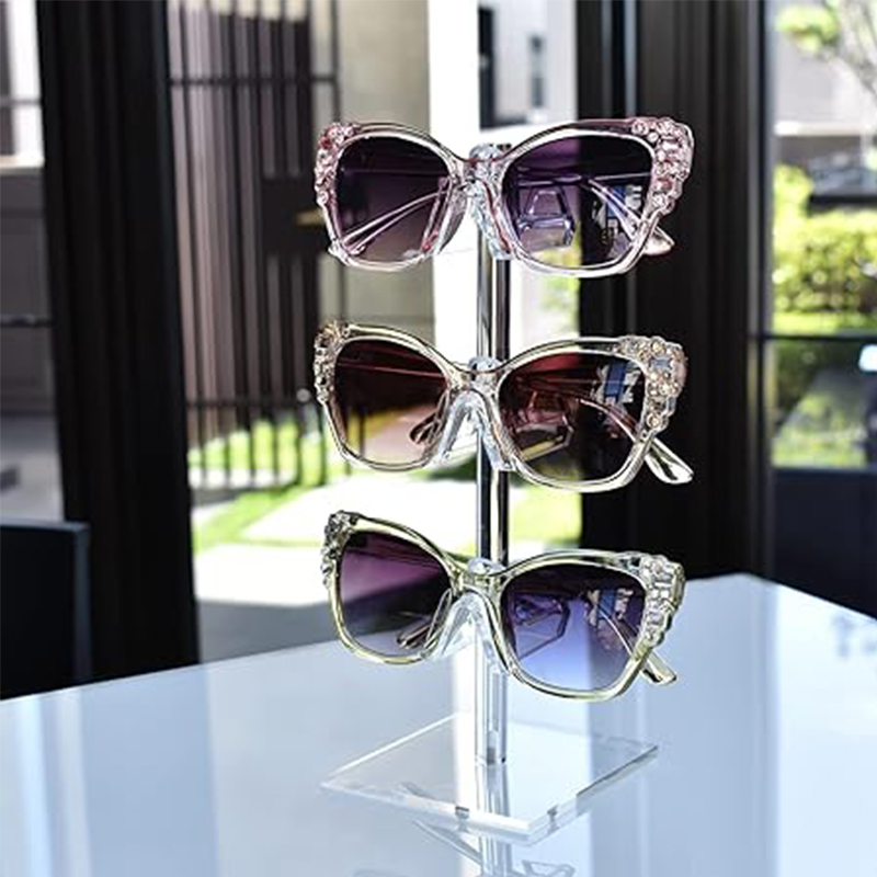 Mataas na Kalidad na Materyal na Acrylic:Glasses Display Stand, Ginawa mula sa premium, transparent na acrylic, ang stand na ito ay parehong matibay at matibay, na nagpapakita ng iyong buong koleksyon ng eyewear na may mala-kristal na visibility, nagpapataas ng apela sa produkto at potensyal na benta.