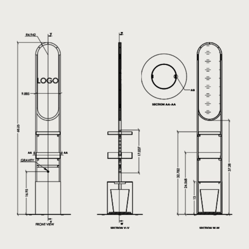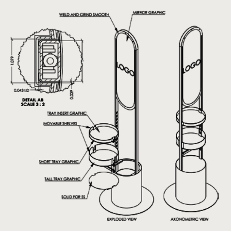 Nagtatampok ang Vertical Cosmetic Display Stand ng kakaibang pabilog na disenyo, na ginagawa itong isang kapansin-pansin at praktikal na solusyon para sa pagpapakita ng mga pampaganda. Ang hugis-itlog na frame sa itaas ay perpekto para sa pagpapakita ng logo ng iyong brand, na nagpapahusay sa pagkilala sa brand. Ang dalawang pabilog na tray sa gitna ay nagbibigay ng sapat na espasyo para sa iba't ibang produktong kosmetiko, na nagpapataas ng pagkakaiba-iba ng display. Tinitiyak ng welded base ang katatagan at kaligtasan, na ginagawa itong angkop para sa pangmatagalang paggamit. Ang mataas na kalidad na powder-coated finish ay lumalaban sa kalawang at matibay, pinapanatili ang eleganteng hitsura ng display stand sa paglipas ng panahon.