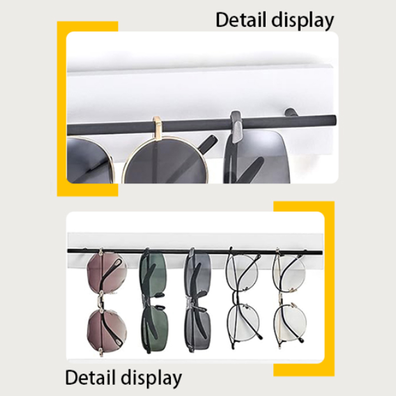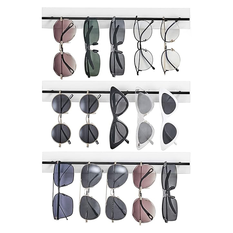 Space-Saving at Maayos na Storage: Wall-Mounted Sunglass Display Shelf , Wall-mounted na disenyo ay nakakatipid sa countertop at desktop space, maayos na nakasabit na salaming pang-araw at salamin sa dingding upang maiwasan ang mga kalat at mga gasgas sa mga lente.