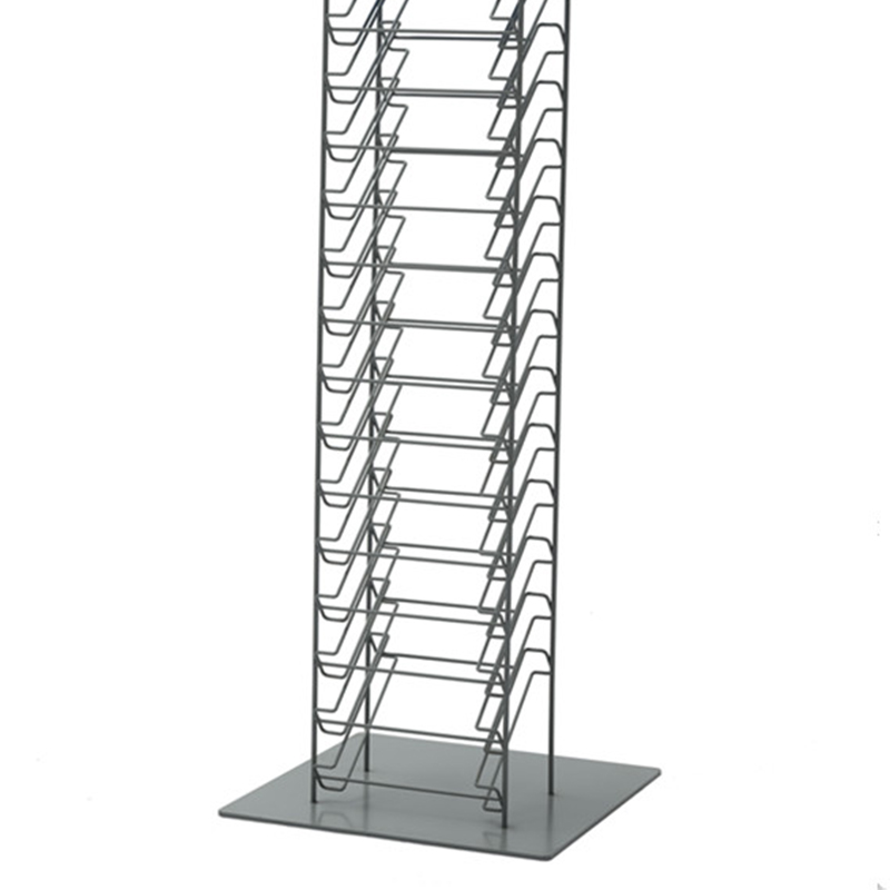 Nagtatampok ang Sample Products Stand Rack ng malinis at functional na vertical na istraktura na may kabuuang sukat na 400mm x 400mm x 1275mm, na na-optimize para sa mga layout ng sahig na nakakatipid sa espasyo sa mga retail na tindahan. Binuo bilang Floor Stand Display, nag-aalok ito ng compact footprint habang nagbibigay ng sapat na storage surface para sa mga sample ng tile, mga aklat ng produkto, mga katalogo, at mga promotional board. Ang isang reinforced na malaking flat iron plate ay hinangin sa ibaba, na makabuluhang nagpapataas ng katatagan at nagbibigay-daan sa rack na magdala ng mabibigat na bagay nang hindi umaalog-alog—angkop para sa parehong mga residential showroom at propesyonal na retail na kapaligiran.