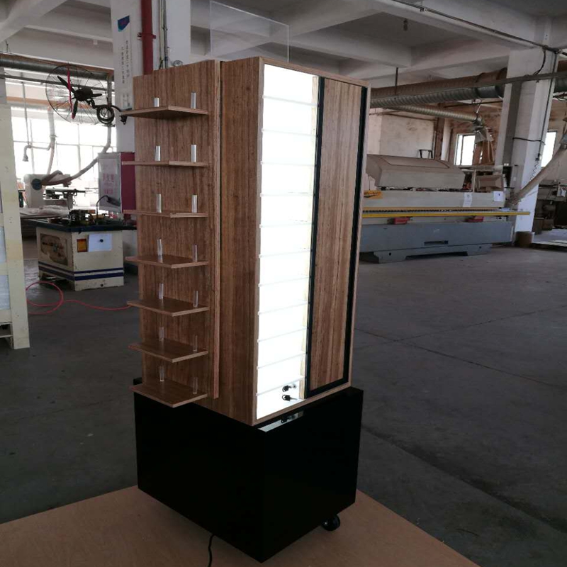 Ang rack ay palipat-lipat, Maaari itong umupo sa gilid upang i-promote ang salaming pang-araw at maaari ding ilagay sa loob ng silid. Ang LED sa gitna upang sindihan ang sunglass na mas attactive.