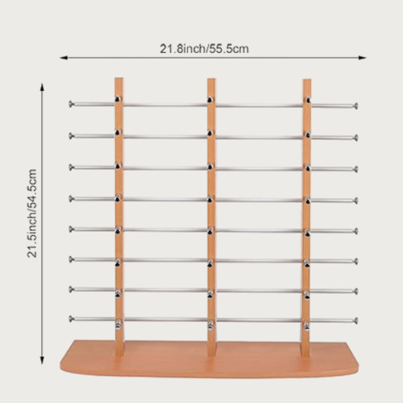 Multi-Purpose Design para sa Maraming Gamit: Sunglass Organizer Shelf Holder, Maaaring gamitin ang rack na ito upang magpakita ng mga salaming pang-araw, salamin sa pagbabasa, o regular na eyewear, na ginagawa itong angkop para sa mga retail na display, personal na koleksyon, o dekorasyon sa bahay.